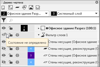 Отображение признака «Состояние не определено» на примере фильтра слоев