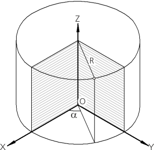 Значение координаты R определяет расстояние от точки до оси Z (т.е. радиус цилиндра).