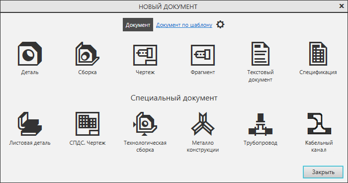 Если документ должен иметь определенные параметры (например, формат листа, материал, сведения о разработчике и др.), вы можете создать документ по выбранному шаблону. Для этого при создании документа на Стартовой странице или в диалоге Новый документ щелкните по ссылке Документ по шаблону, а затем дважды щелкните по названию нужного шаблона. Подробнее о шаблонах...