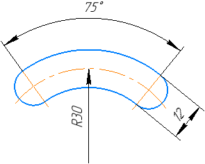 При создании дугового паза будут автоматически проставлены следующие размеры: угол раствора, радиус дуговой оси и ширина паза.