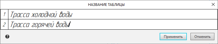 Этот диалог служит для ввода или редактирования названия таблицы — обычной таблицы, таблицы отчета или таблицы спецификации на чертеже.