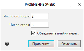 Диалог Разбиение ячеек |
