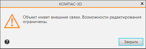 Это сообщение появляется при попытке отредактировать элемент, который ссылается на объекты, находящиеся в другом файле и недоступные в данный момент.