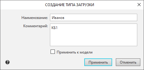 Позволяет создавать/редактировать типы загрузки сборочной модели.