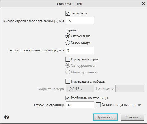 Если опция включена, то таблица автоматически разбивается на несколько страниц с равным количеством строк в каждой. Количество строк отображается в поле Строк на страницу. По умолчанию на последней странице нет пустых строк.