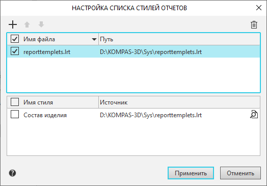 Диалог позволяет указать ранее созданные библиотеки стилей (файлы *.lrt) и выбрать из них стили для использования в отчетах.