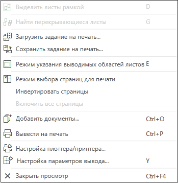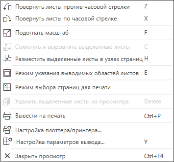 Для вызова команд можно использовать клавиши ускорители, см. раздел Специальные действия в режиме предварительного просмотра перед печатью.