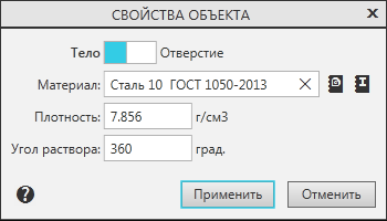 Обозначение указанного материала отобразится в поле Материал, а значение его плотности — в поле Плотность.