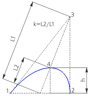 Коэффициент k (инженерный дискриминант) — это отношение части медианы треугольника, расположенной под конической кривой, к полной длине медианы. Значение k находится в пределах 0,0001 — 0,9999 и определяет форму кривой: