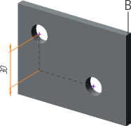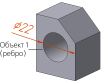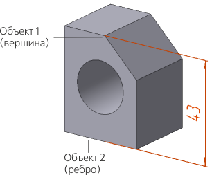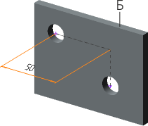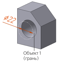 Для построения размера указаны точки 1 и 2, принадлежащие грани А и расположенные в центрах круглых ребер.