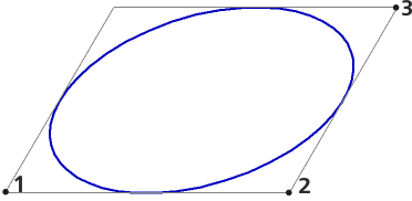 1.Задайте три вершины параллелограмма, описанного вокруг создаваемого эллипса. Длины полуосей эллипса и угол наклона его первой полуоси к оси абсцисс текущей системы координат определяются автоматически.