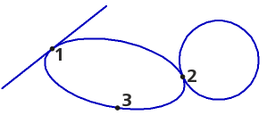 1.Укажите две кривые, которых должен касаться эллипс. Наименования кривых появятся в поле Объекты Панели параметров, а фантом создаваемого эллипса — в графической области документа. Эллипс будет касаться выбранных кривых в точках указания.