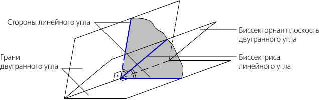 Положение биссекторной плоскости необходимо задать до указания второй стороны двугранного угла. |
