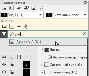 Поиск в Дереве чертежа