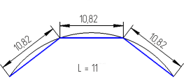 На рисунке показана обечайка, контур которой содержит отрезок и две дуги. Одна из этих дуг сегментирована, вторая — нет.