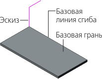 Сгиб располагается вдоль одного прямолинейного ребра или цепочки прямолинейных ребер листовой детали. Ребро является базовой линией сгиба, а содержащая его грань (внешняя или внутренняя) — базовой гранью сгиба.