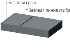Плоская внешняя или внутренняя грань листовой детали, содержащая линию сгиба, называется базовой гранью этого сгиба.