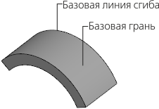 Для формирования цилиндрического сгиба необходимо наличие базовой линии сгиба — прямолинейного объекта, определяющего положение сгиба в листовой детали.