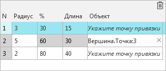 6.Если для задания точки указан точечный объект, то его название отображается в таблице в столбце Объект. В режиме редактирования можно сменить объект, выделив строку нужной точки и указав другой точечный объект в графической области. Если требуется удалить ассоциативную связь точки с объектом, щелкните по значку