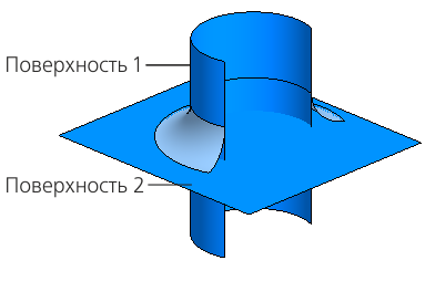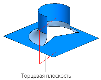 По умолчанию переключатель находится в положении Торцевой плоскостью, при этом исходная поверхность обрезается по кривой пересечения с плоскостью, содержащей боковое ребро поверхности скругления, до стыка с граничной кривой поверхности скругления.