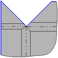 •боковые стороны продолжений сгибов, образующих угол, пересекаются вне выреза, рисунок в); для сравнения: боковые стороны продолжений на рисунке Замыкание углов с обработкой угла разными способами (выше) пересекаются внутри выреза.
