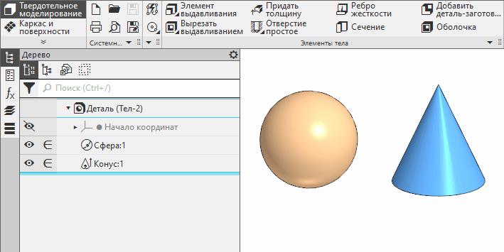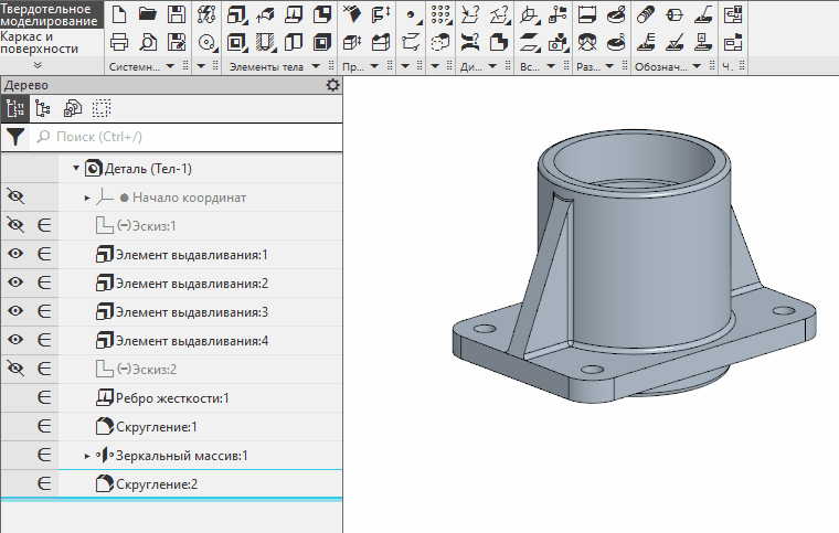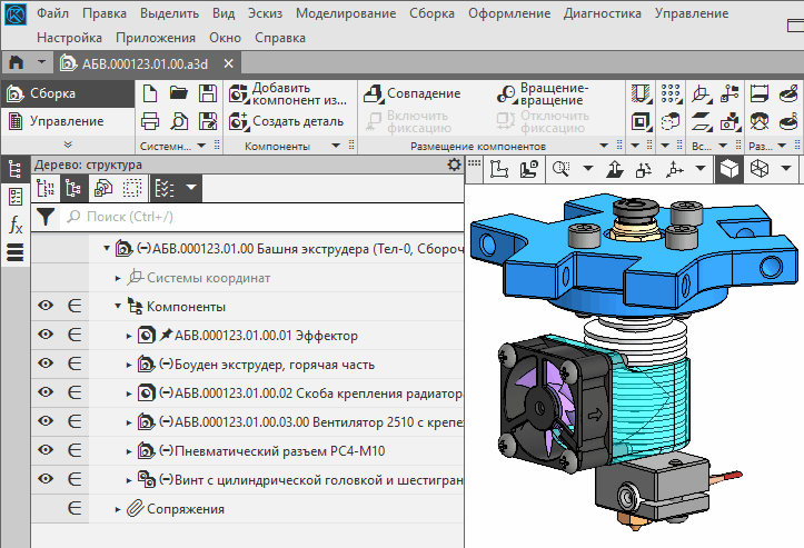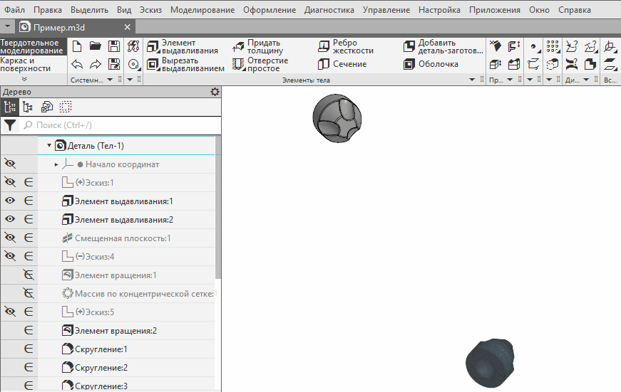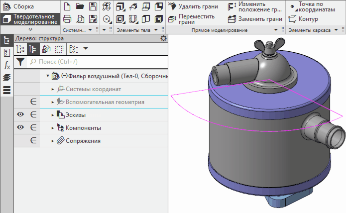 •Показать в дереве — в контекстном меню компонента, выделенного в графической области. Команда разворачивает Дерево модели и подсвечивает в нем выделенный компонент. Ранее команда присутствовала только в контекстном меню выделенного примитива или геометрического объекта.