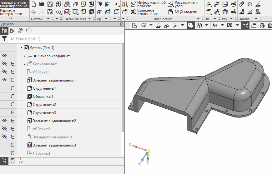 7.Добавлена команда Проверка геометрии, предназначенная для диагностики тел, поверхностей и граней на корректность математического описания. Выполняется для отдельных выбранных объектов либо для всех объектов, входящих в сборку или в указанный компонент.