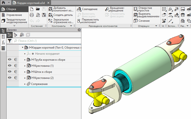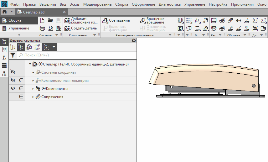 18.Реализована возможность копирования компонентов через буфер обмена и вставки их в эту же или другую модель, в том числе в процессе контекстного редактирования. Для копирования можно выбрать любой компонент на любом уровне вложенности; вставка производится на первый уровень. При необходимости во время копирования можно включить сохранение сопряжений между копируемыми компонентами и между ними и системой координат содержащей их модели.