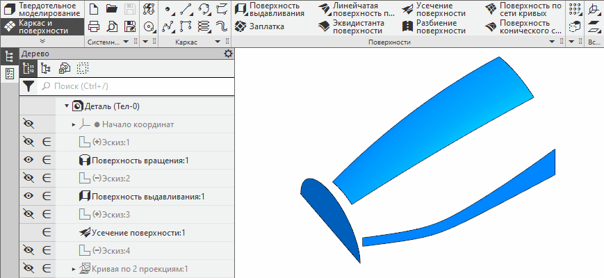 •в команде Свернутая кривая появилась возможность обрезки свернутой кривой ребрами, ограничивающими поверхность, т.е. граничными ребрами и ребрами вырезов, если они имеются;