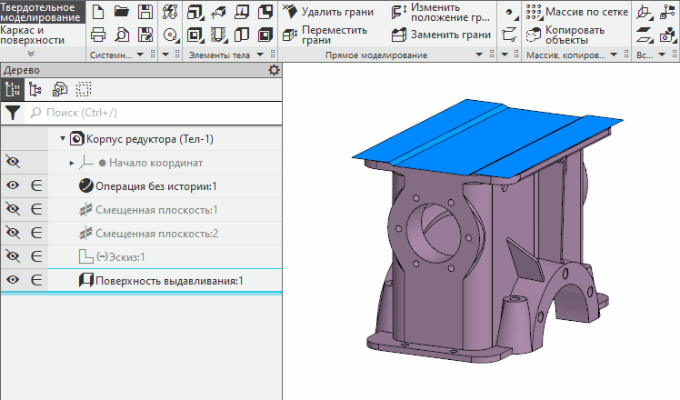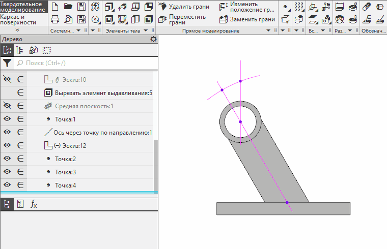 5.Добавлена новая команда прямого редактирования — Изменить положение граней. Она позволяет сдвинуть выбранные грани в заданном направлении на определенное расстояние или повернуть их вокруг заданной оси на определенный угол.