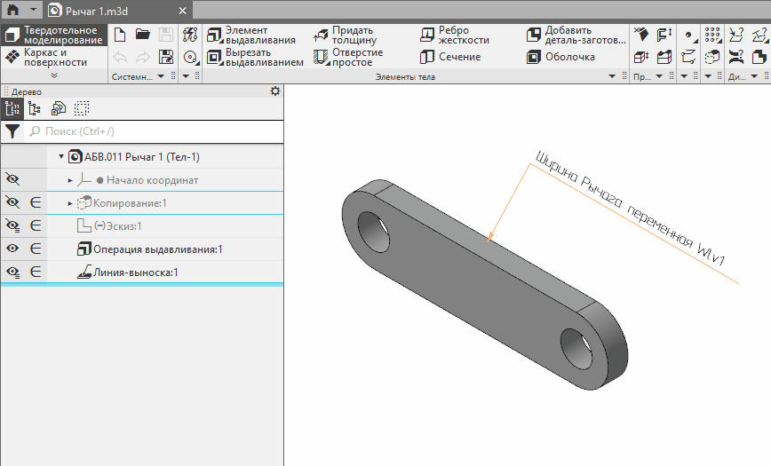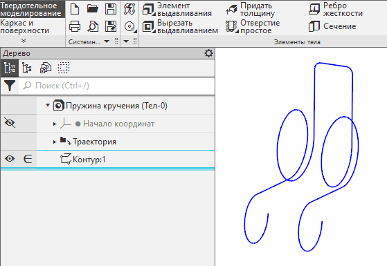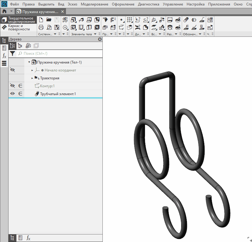 3.Добавлены команды Трубчатый элемент и Вырезать трубчатым элементом. Они выполняют операцию по траектории с автоматически формируемым сечением в виде окружности заданного диаметра. Траекторию указывает пользователь. Трубка может быть сплошной или тонкостенной. В последнем случае нужно ввести либо толщину стенки, либо значение второго диаметра.