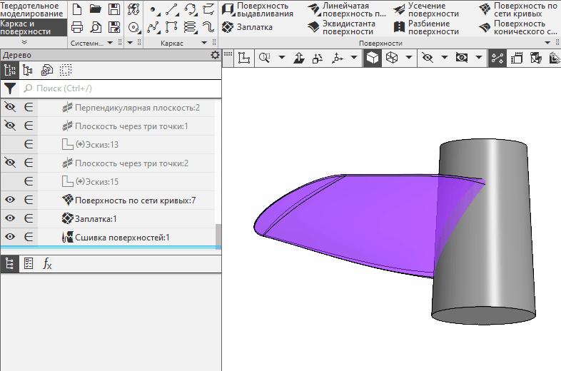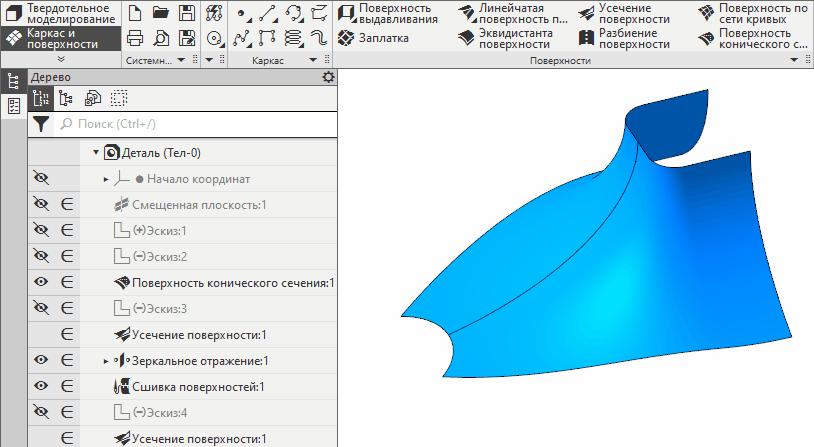 4.Добавлена команда Средняя поверхность, предназначенная для построения поверхности, которая является геометрическим местом точек, равноудаленных от двух указанных поверхностей.
