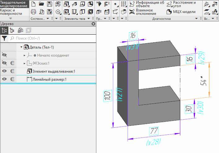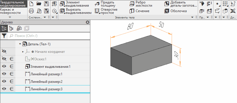 31.Если при масштабировании тела или поверхности включено сохранение копии, то в Дереве операция масштабирования имеет два подчиненных объекта: копию исходного объекта и промасштабированное тело или поверхность (ранее — только копию исходного объекта).