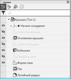 Отображение истории построения модели в Дереве |