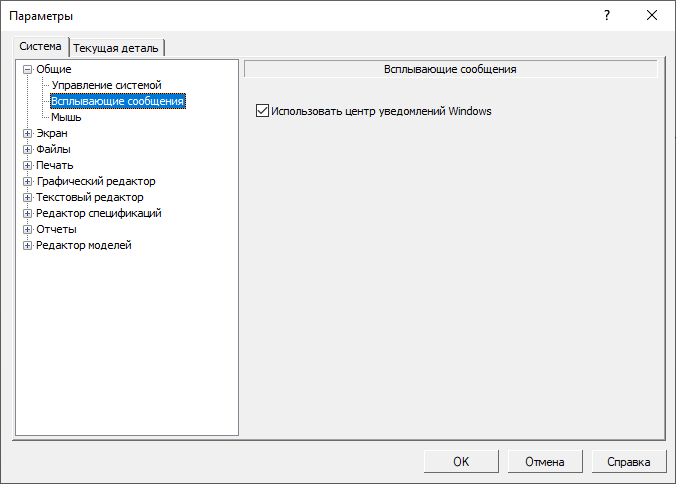 Настройка параметров системы КОМПАС-3D Viewer производится на вкладке Система диалога, вызываемого командой Настройка — Параметры...