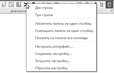 Вы можете изменить количество строк Инструментальной области, работая в главном окне системы или в режиме настройки интерфейса. Для этого используются команды контекстного меню Инструментальной области. Данное меню можно вызвать как на одной из инструментальных панелей, так и на свободном поле Инструментальной области (в последнем случае меню содержит только команды изменения количества строк).