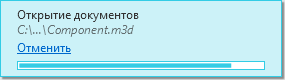 В случае, когда для открытия выбраны несколько файлов, в правом нижнем углу графической области отображается сообщение. В нем показывается полное имя файла документа, открываемого в данный момент, и индикатор процесса его загрузки. Ссылка Отменить в этом сообщении позволяет отказаться от загрузки остальных документов группы (т.е. тех документов, загрузка которых еще не началась).