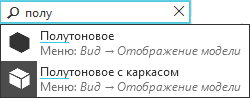 •Для команд, имеющих два состояния — включено/отключено (например, команд управления отображением объектов), — произойдет переключение состояния команды. Для таких команд в списке найденных показывается текущее состояние, например, в виде пиктограммы на темном фоне или включенной опции (см. рисунок).